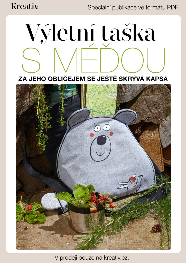 V tomto PDF návodu si společně namalujete a ušijete tašku s kapsou ve tvaru medvědí hlavy, která zdobí její přední stranu.