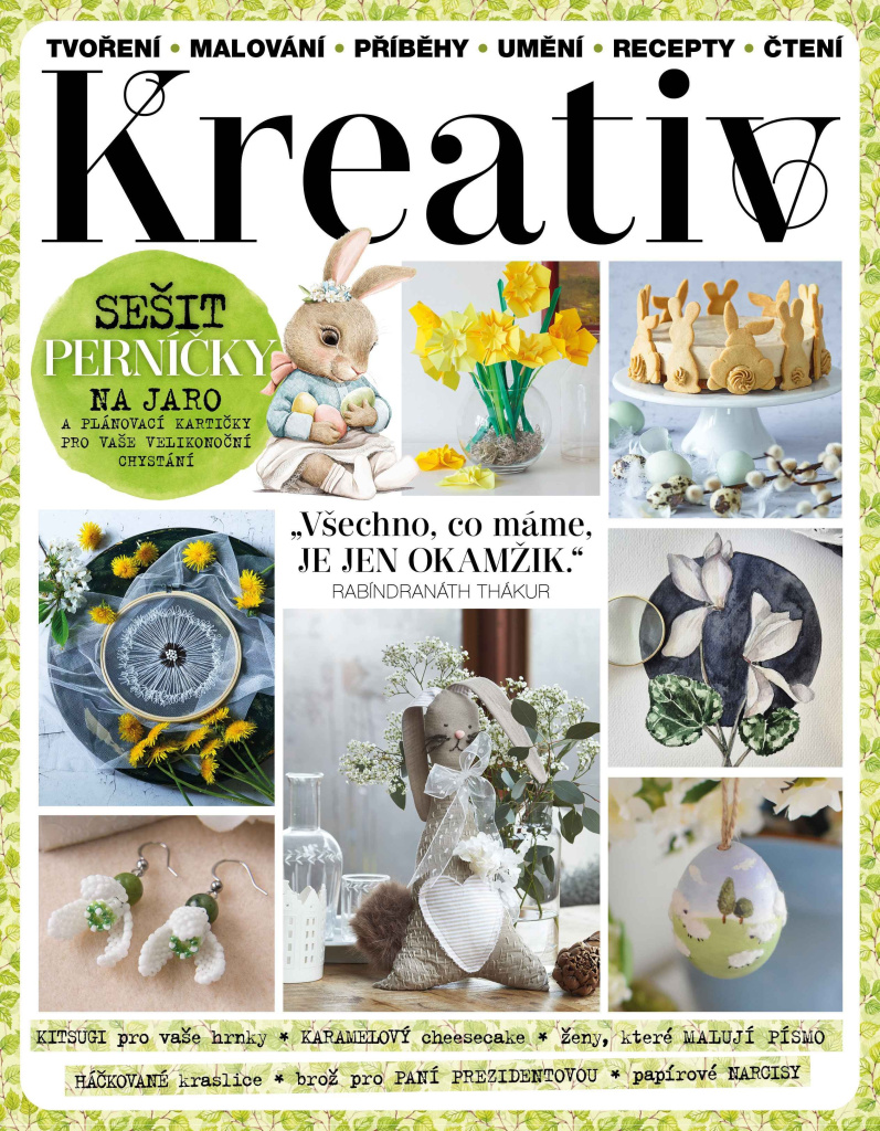 Venku to možná ještě na jaro úplně nevypadá, ale s novým číslem časopisu Kreativ se můžete naladit na sluníčko už teď. Čeká vás vydání plné tvoření, jemných barev, vůně perníčků a radosti z ruční práce.